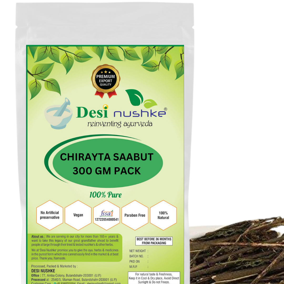 DESI NUSHKE Chirayta Saabut | 300 GM | 100% Pure & Natural | Bitter Stick | Indian Gentian | Chiraita Nepali | Chirata Stick | 10.58 Oz