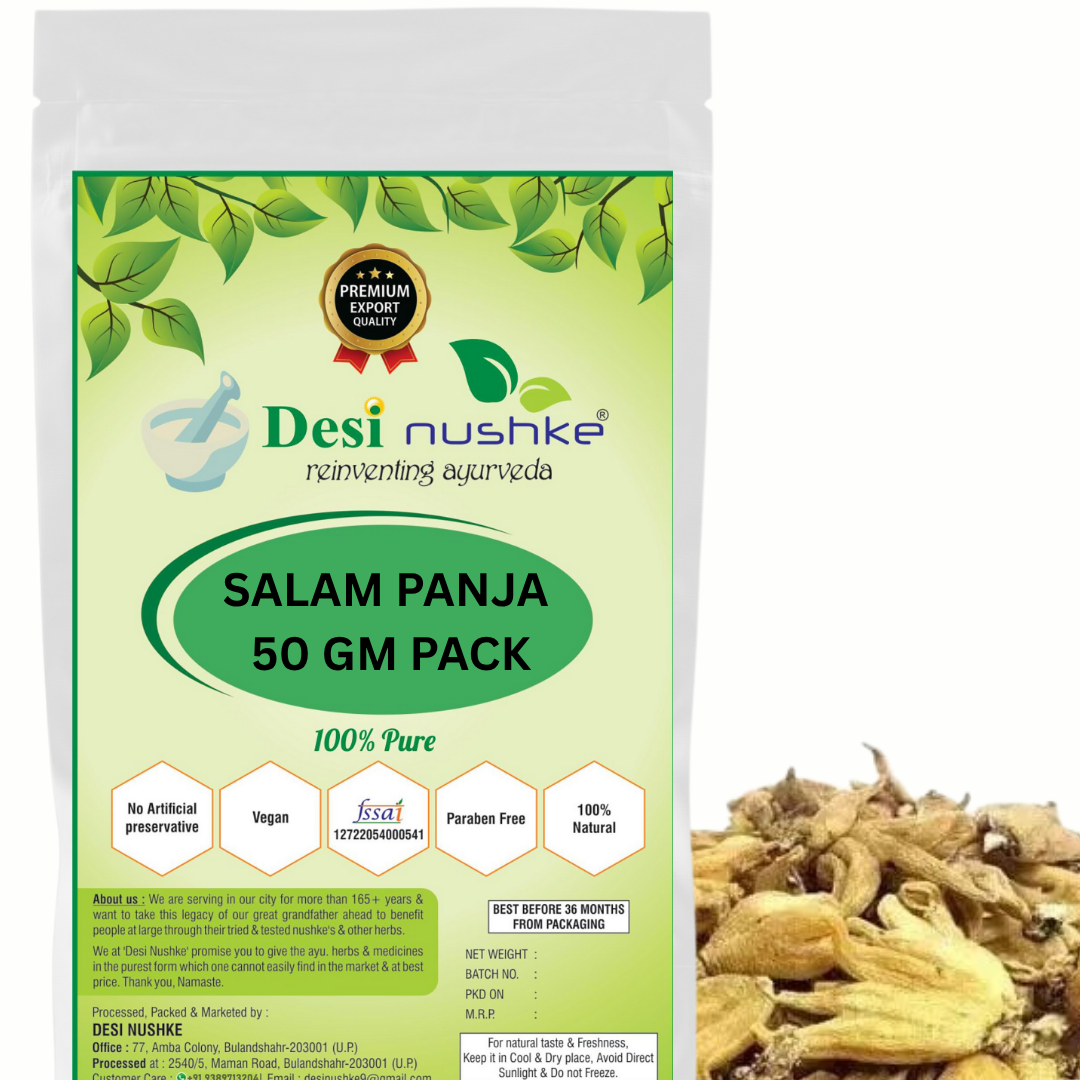 DESI NUSHKE Salam Panja | 50 GM | Hatta Haddit Lucky hand Root | Natural Marsh Orchid | Organic | Salab Panja | 1.76 Oz
