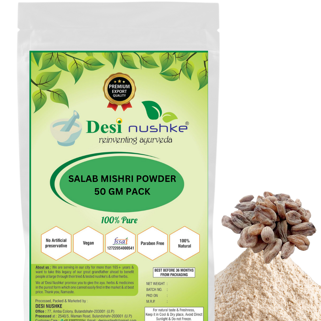 DESI NUSHKE Salab Mishri Powder | 50 GM | Polygonatum Verticillatum | Salam Misri | Salmond Sugar | Orchis Mascula Powder | 100% Pure & Natural | 1.76 Oz