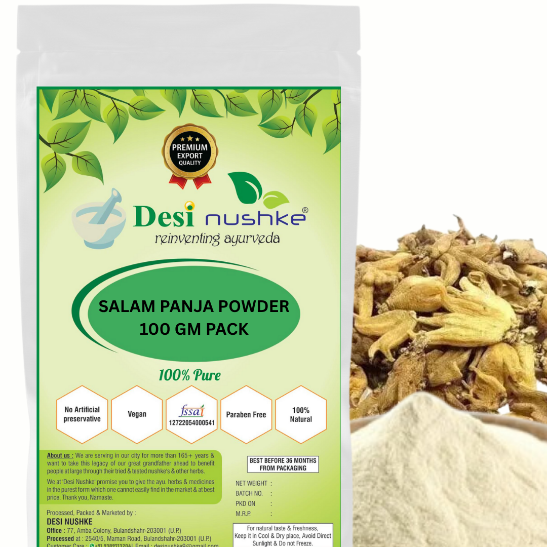DESI NUSHKE Salam Panja Powder | 100 GM | Salab Panja | Hatta Haddit | Panchaule Dactylorhiza Hatagirea | Lucky hand Root | 3.52 Oz