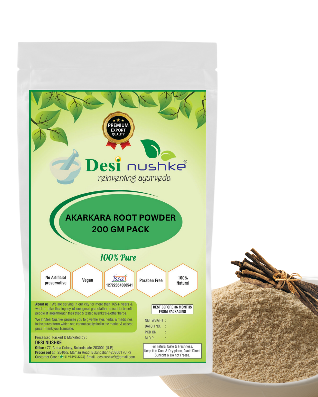 DESI NUSHKE Akarkara Root Powder | 200 GM | Pellitory Root Powder | Anacyclus Pyrethrum | 7.05 Oz