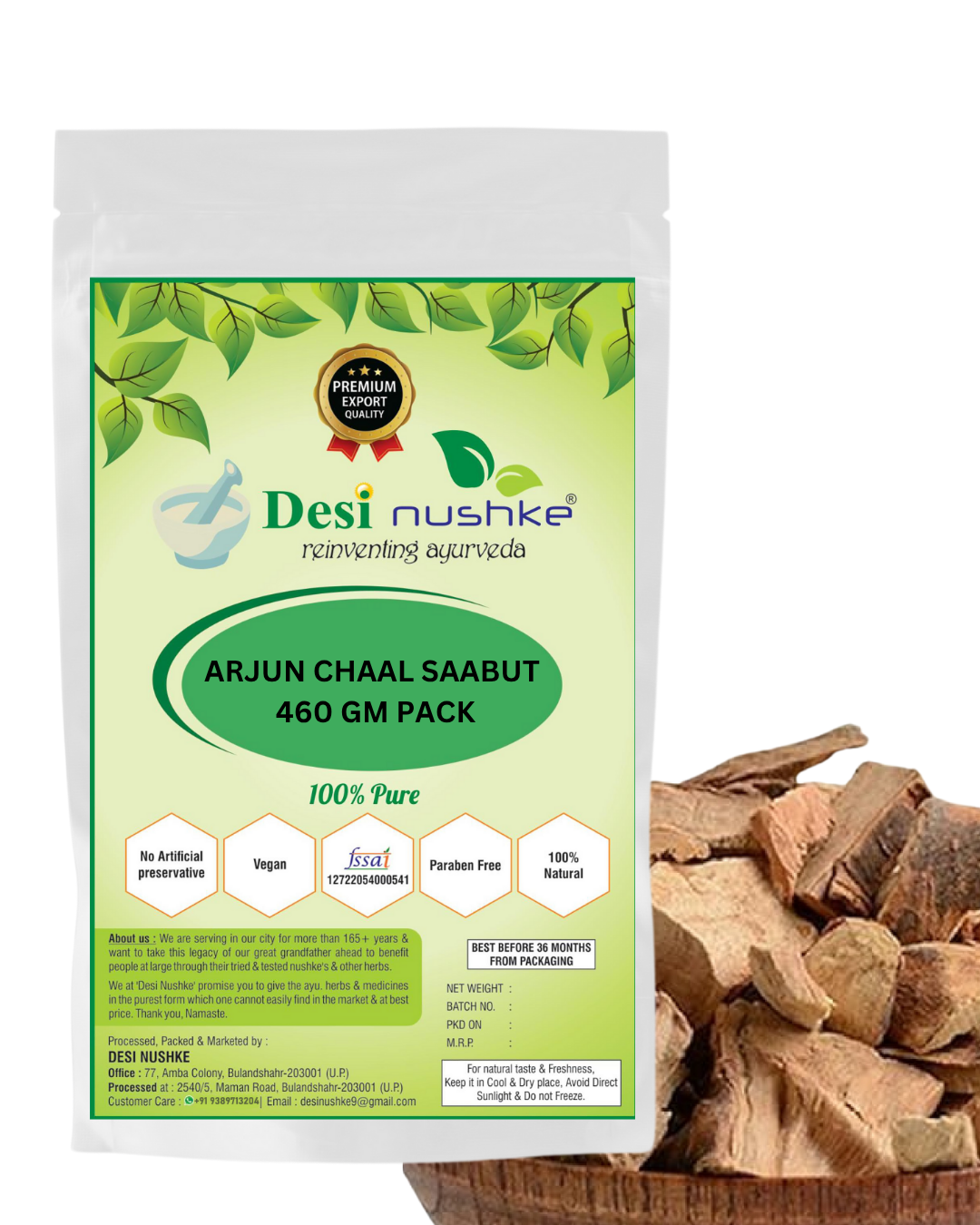DESI NUSHKE Arjun Chaal Saabut | 460 GM | 100% Pure | Terminalia Arjuna Bark Organic | Dried Arjuna Bark | 16.22 Oz