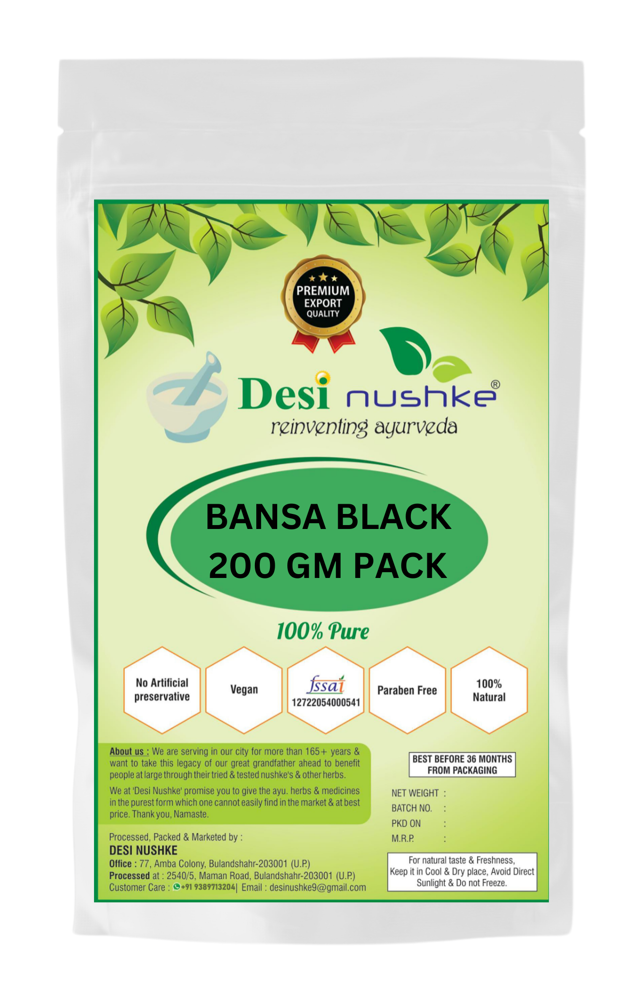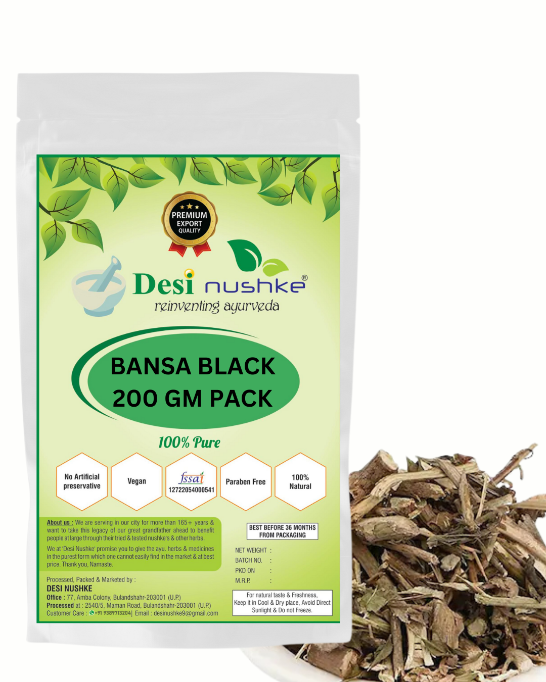 DESI NUSHKE Bansa Black | 200 GM | Adhatoda Vasaka | Vasa | Adusha | 7.05 Oz