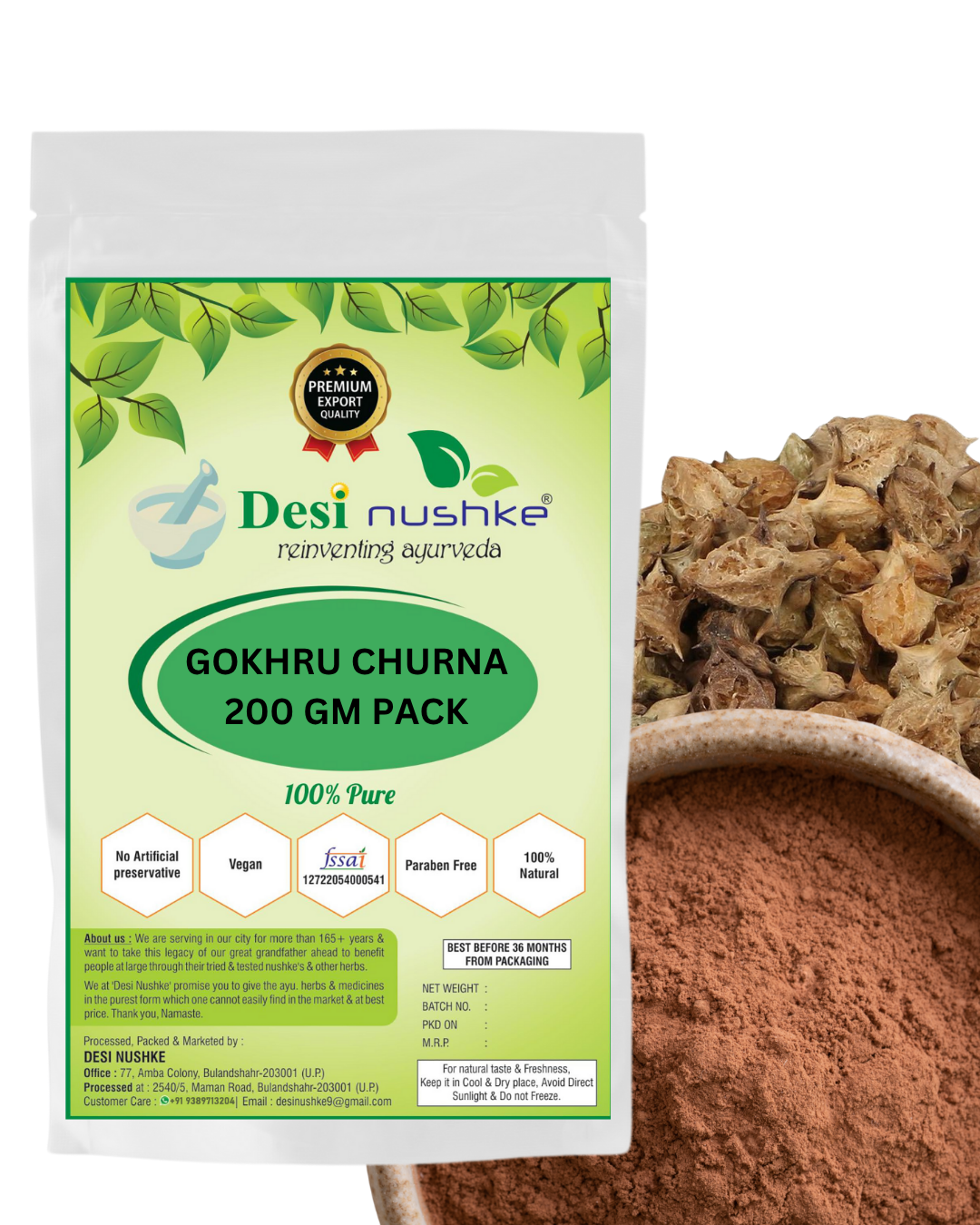DESI NUSHKE Gokhru Churna | 200 GM | Tribulus Terrestris Powder | Natural Churna | 7.05 Oz