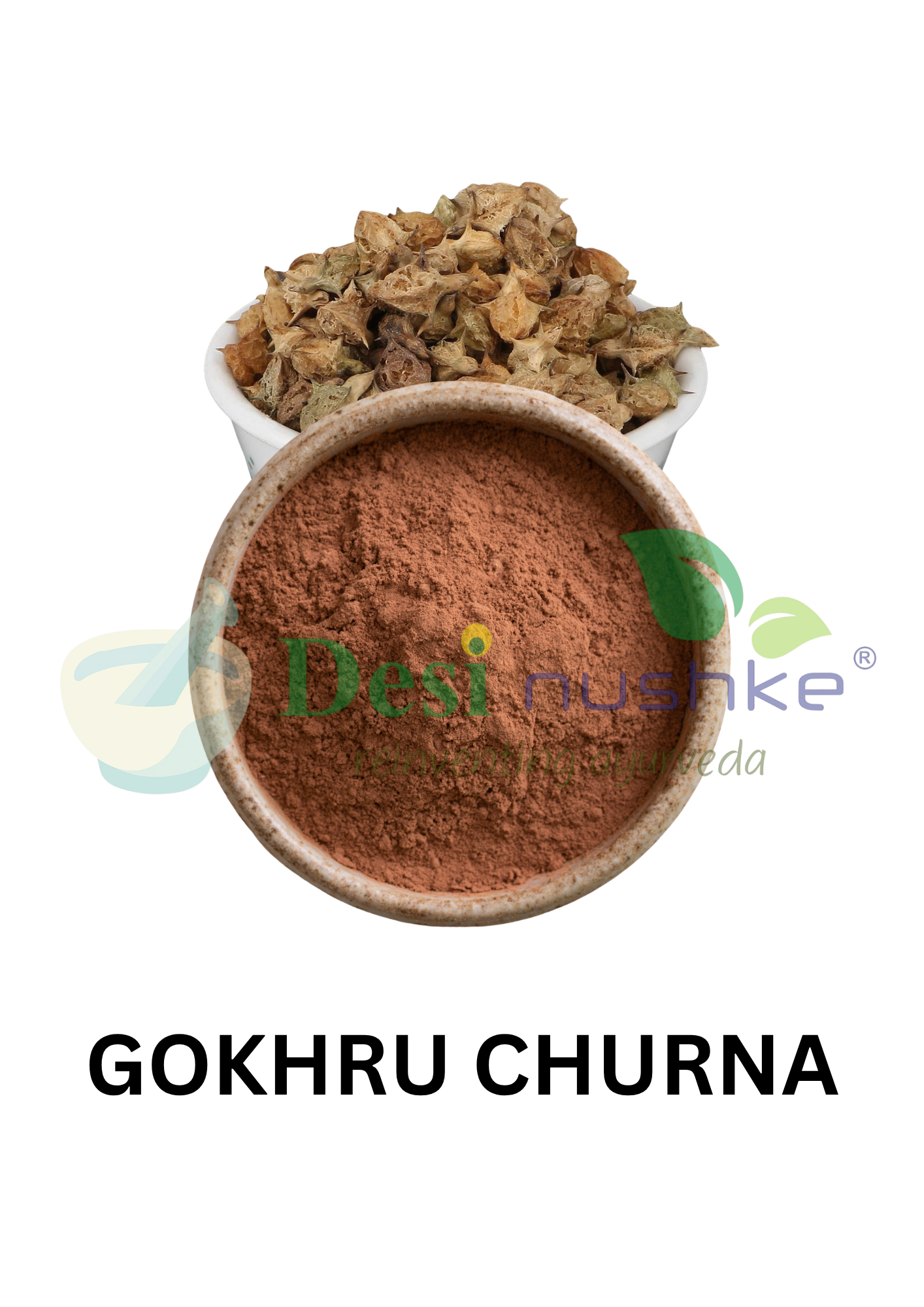 Desi Nushke Presents Gokhru Powder. Gokhru is a herbal formulation that aims to strengthen and rejuvenate the body. Gokhru powder is prepared by washing the Gokhru herbs and a few other herbs and sun-drying them. Gokhru's benefits for males also include relieving urinary problems. Our quality team inspect the each and every batch and ensure the quality of Gokhru Powder.
