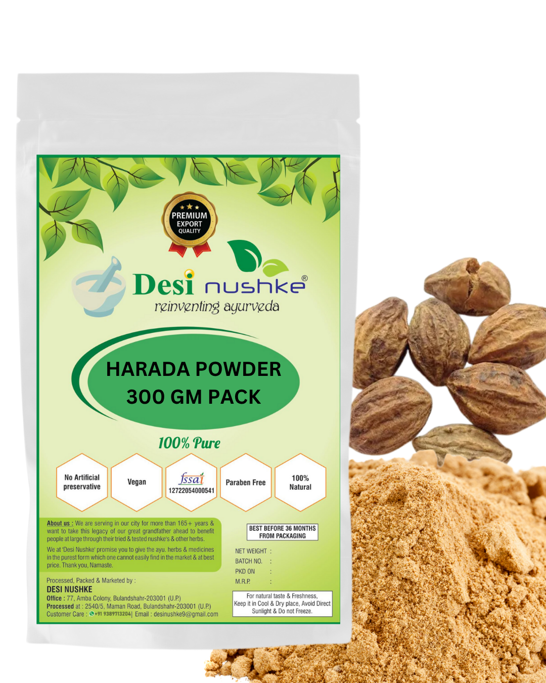 DESI NUSHKE Harada/ Haritaki Powder | 300GM | 100% Pure | Terminalia Chebula | Chebulic Myrobalan | Harad | Inknut | Harade | 10.58 Oz
