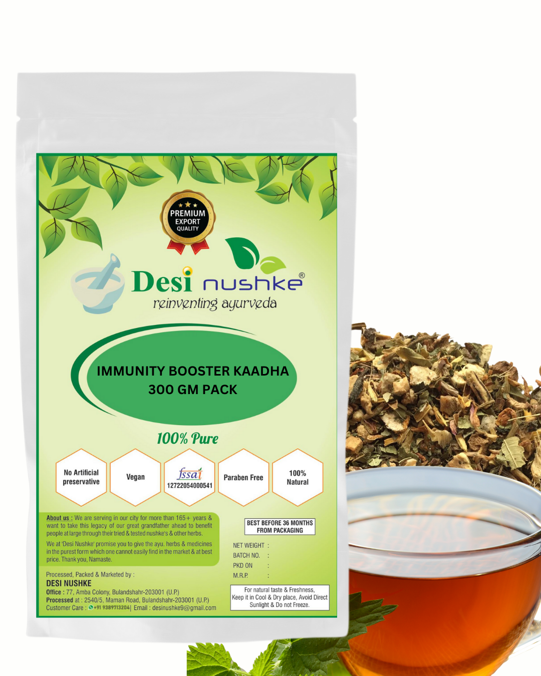 Desi Nushke Presents Immunity Booster Kaadha Which is more than just a hydrating beverage. It is touted to be one of the healthiest beverages on the planet. The green tea plant contains a range of healthy compounds that make it into the final drink. Consumed for its medicinal and therapeutic properties, as well as its rejuvenating aroma, herbal tea is an infusion of aromatic herbs and plants. Served both hot and cold, it is a delicious alternative to highly caffeinated beverages. According to popular belief, herbal teas are commonly known as Tisanes. Tisanes are prepared with the help of various parts of varieties of plants and shrubs.