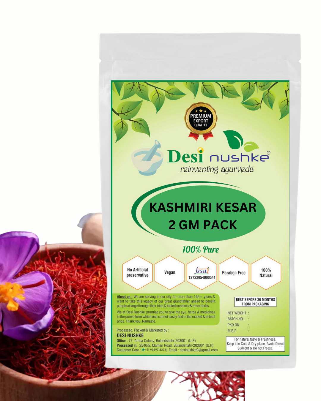 Desi Nushke Presents Kashmiri Kesar. We believe that our reputation must be based on the quality of our products. We have travelled across the country to handpick the finest quality products at the best possible rates. Our products are subjected to rigorous quality control procedures throughout the procurement and packaging processes. It is our constant endeavor to provide widest possible range to consumer and now have an ever expanding range of selections across dry fruits, spices and nuts. We maintain great taste and guaranteed quality throughout the year and our products are sure to be your new favourites after your first purchase.