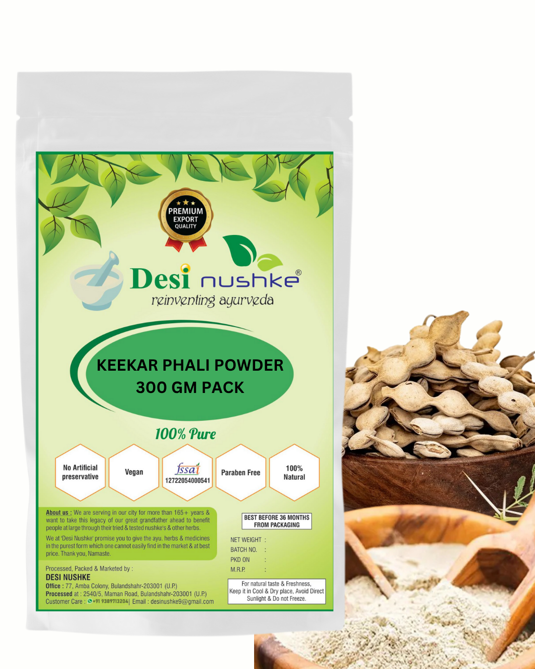 DESI NUSHKE Keekar Phali Powder | 300 GM | Acacia Nilotica | Raw Herbs | Babul Phali Powder | Babool Phal | 10.58 Oz